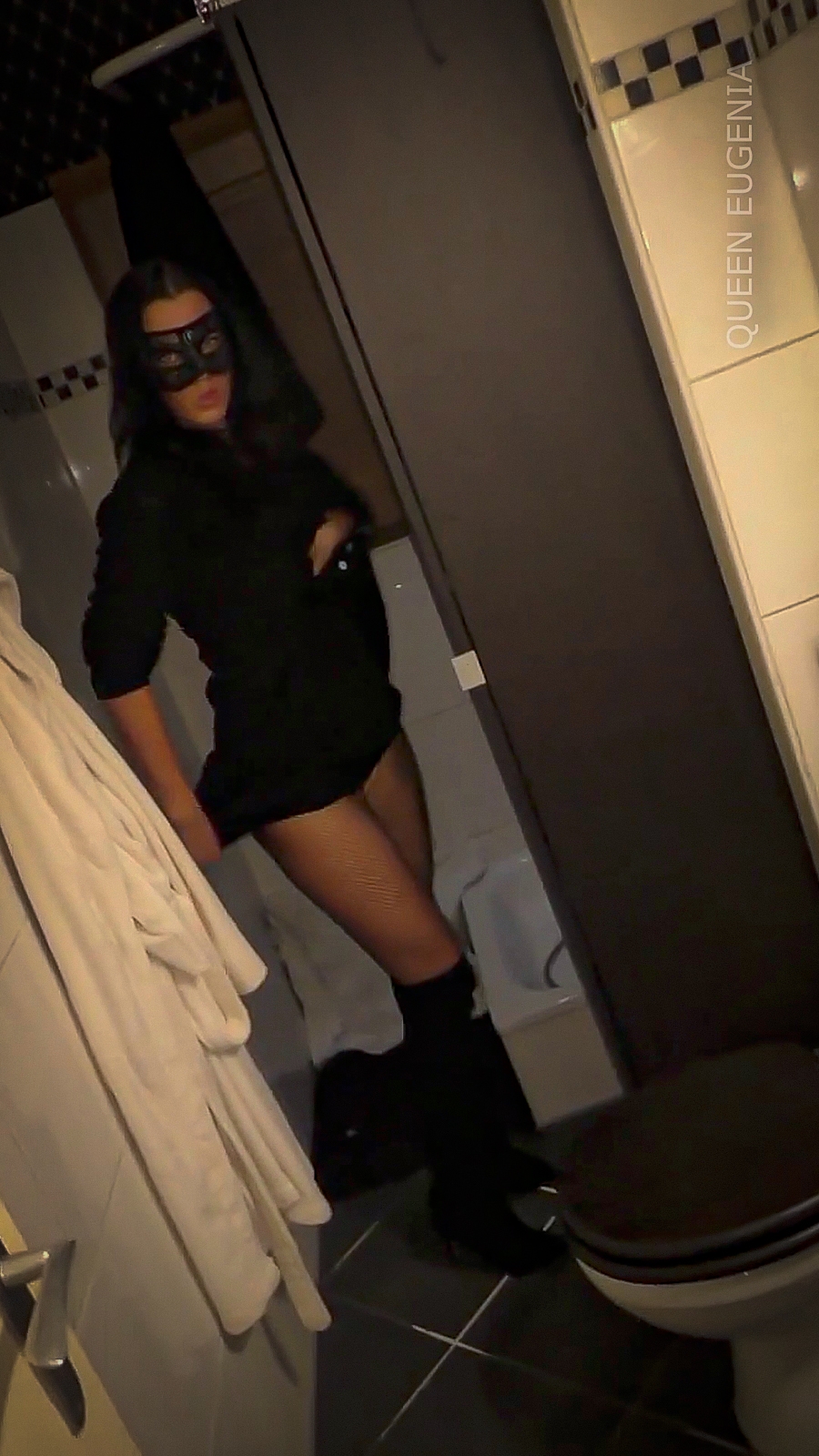 Queen Eugenia anal plug and high boots in public