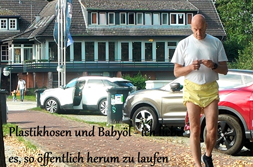 Plastikschlampe Volker G.: öffentlich in Plastikhosen