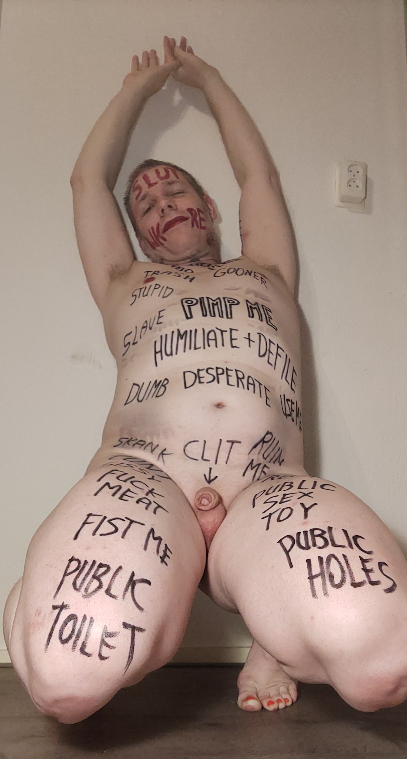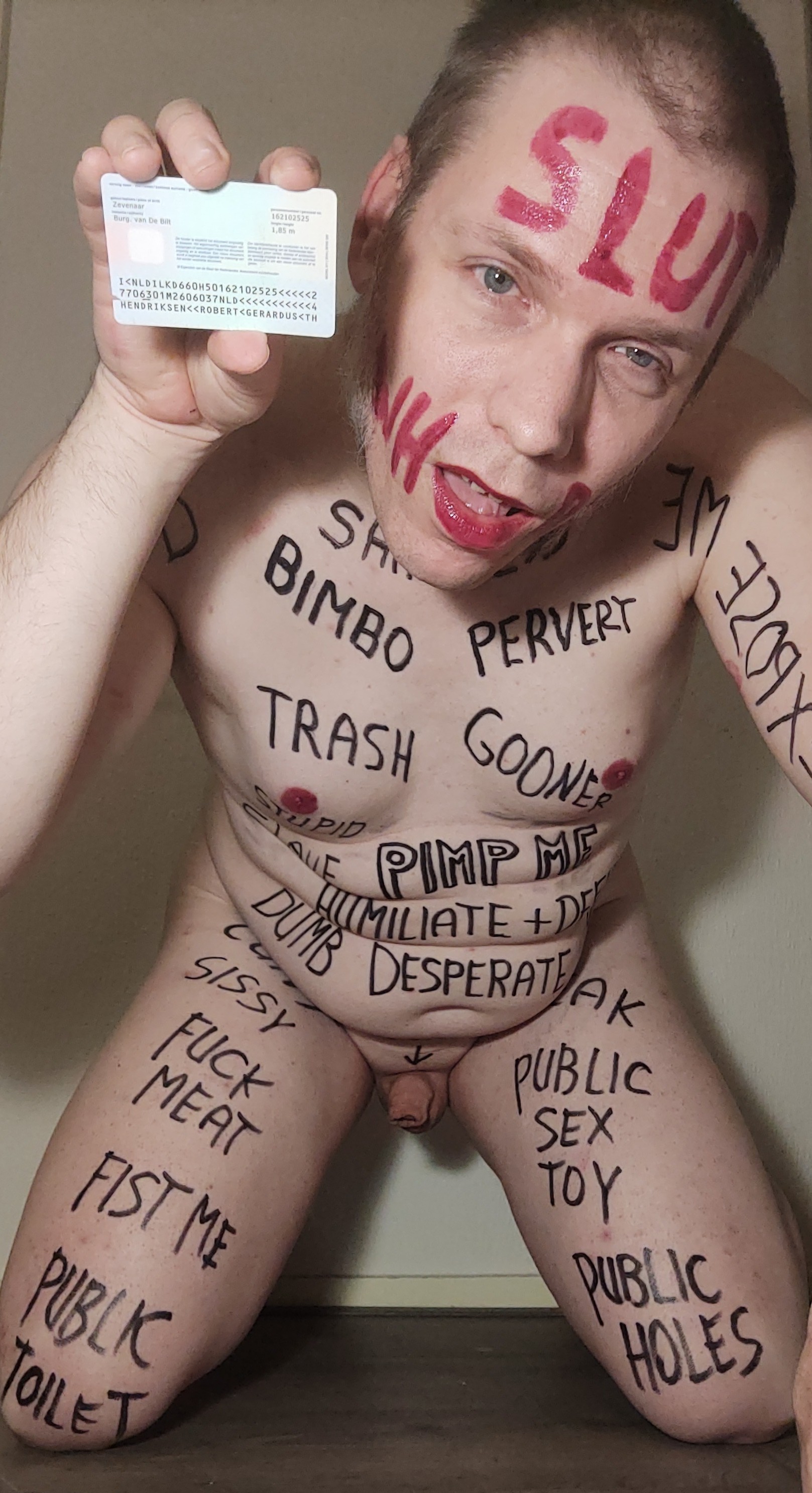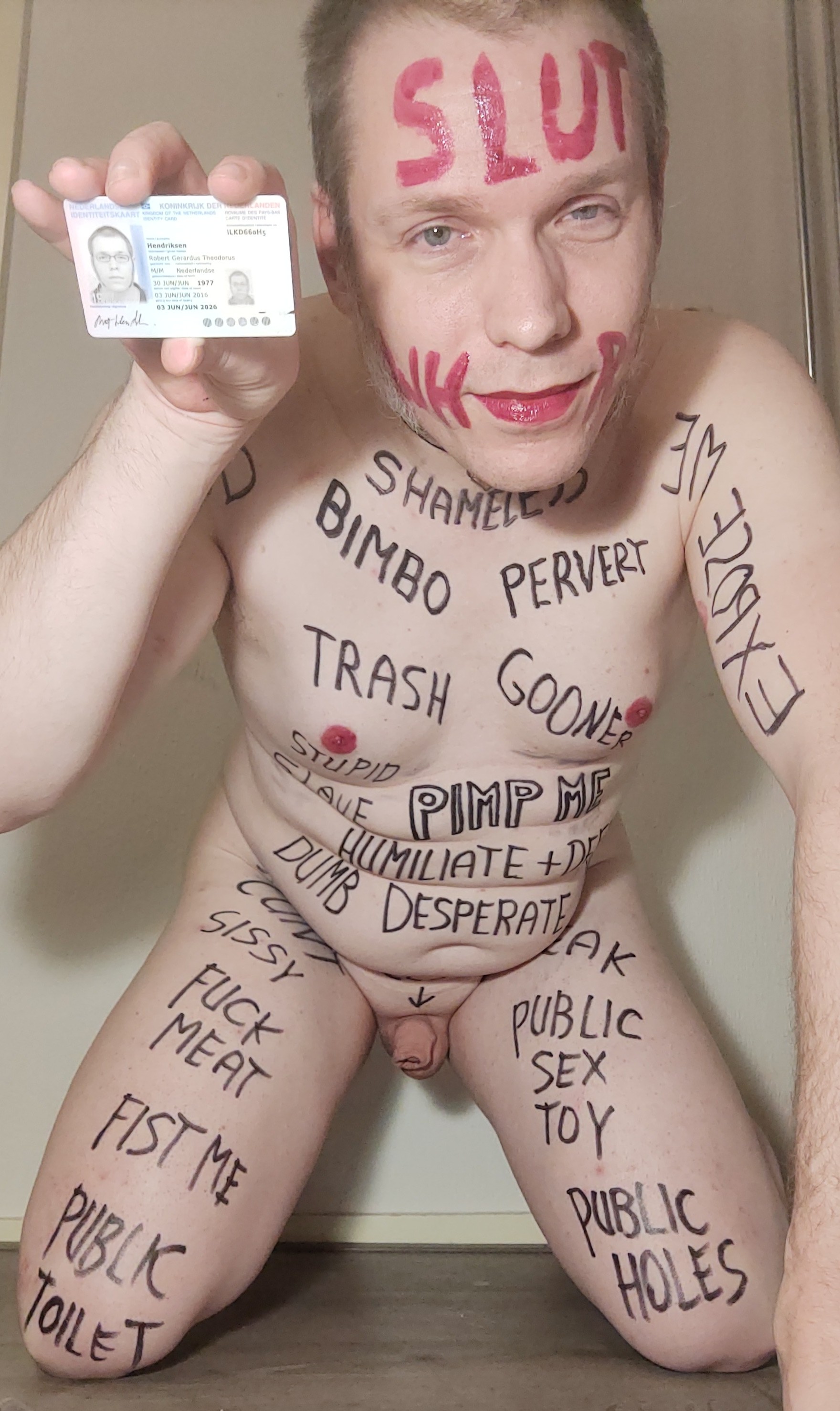 Webslut Robert Hendriksen completely humiliating himself with extreme degrading bodywriting.