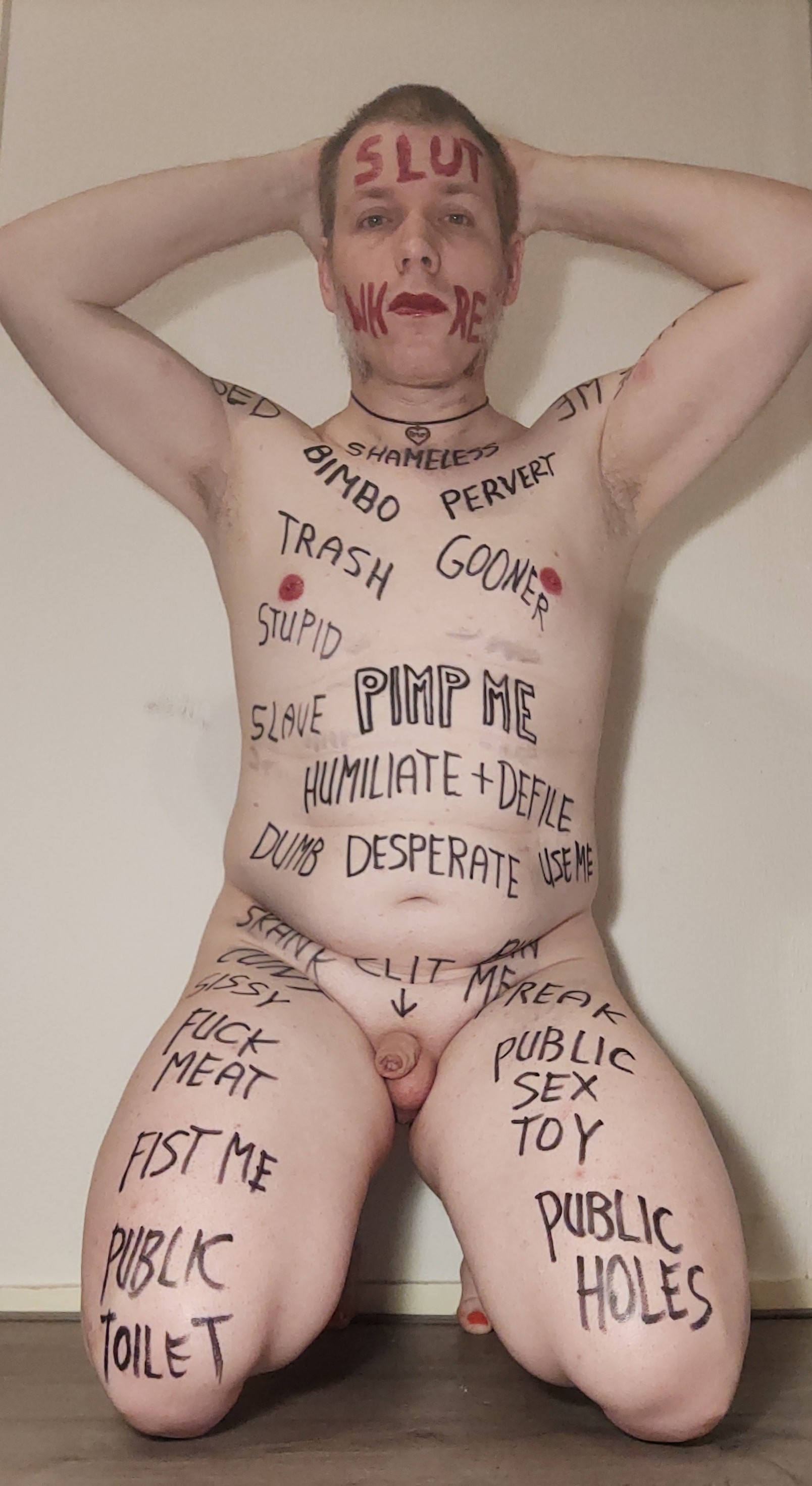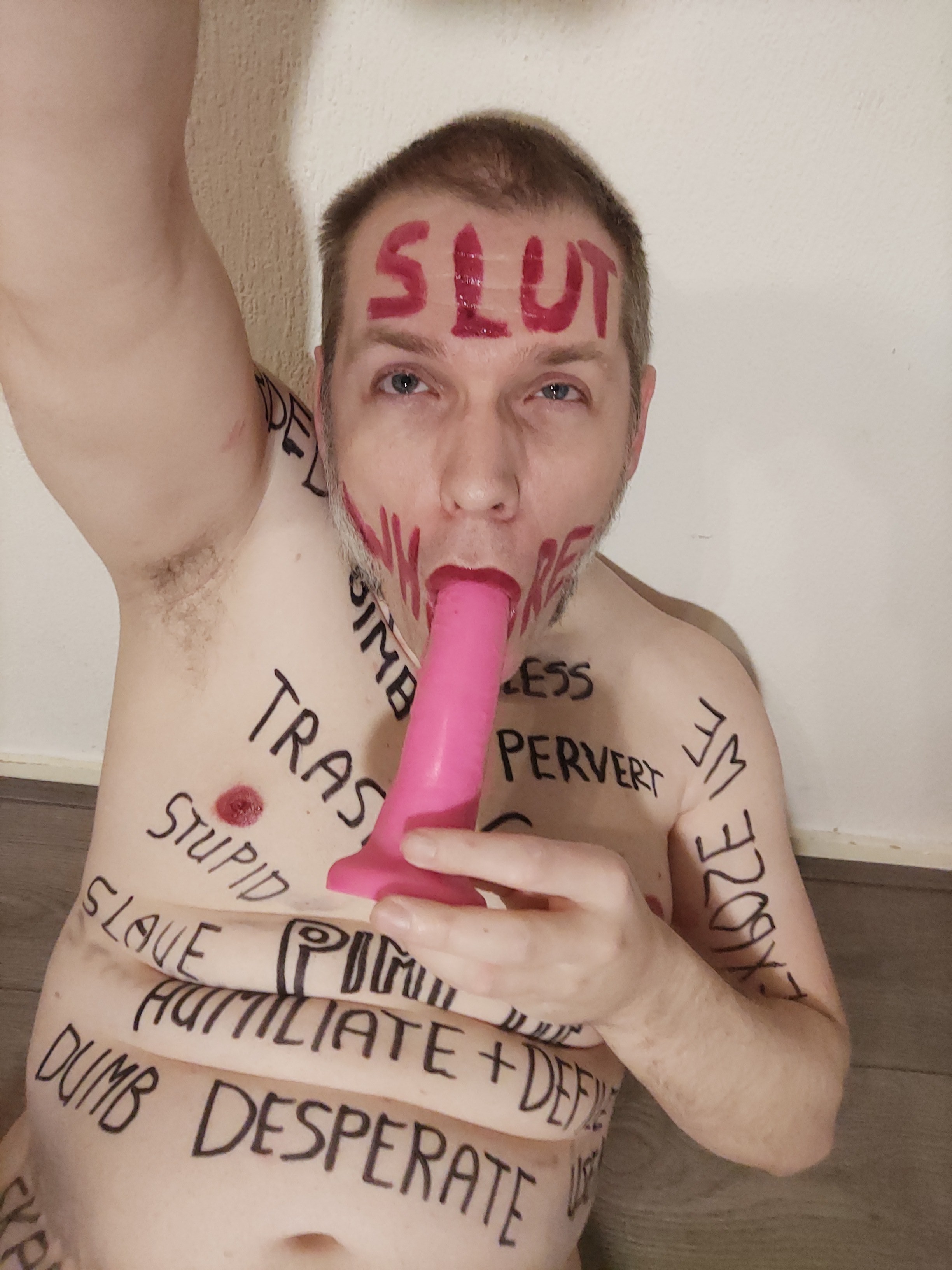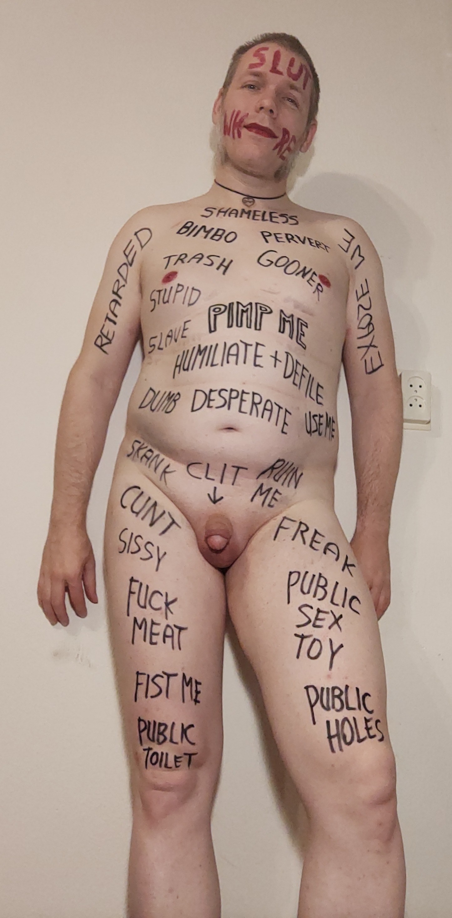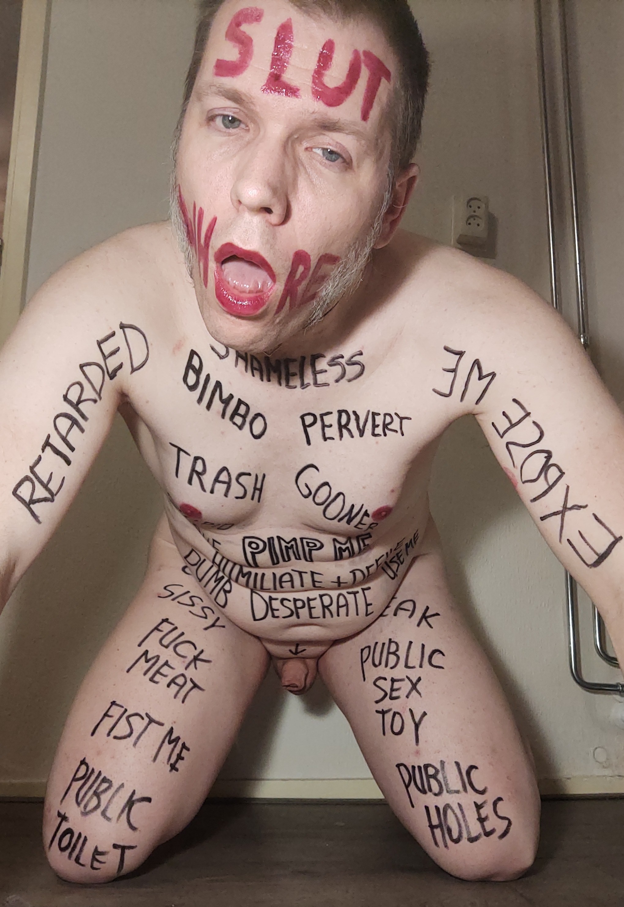 Webslut Robert Hendriksen completely humiliating himself with extreme degrading bodywriting.