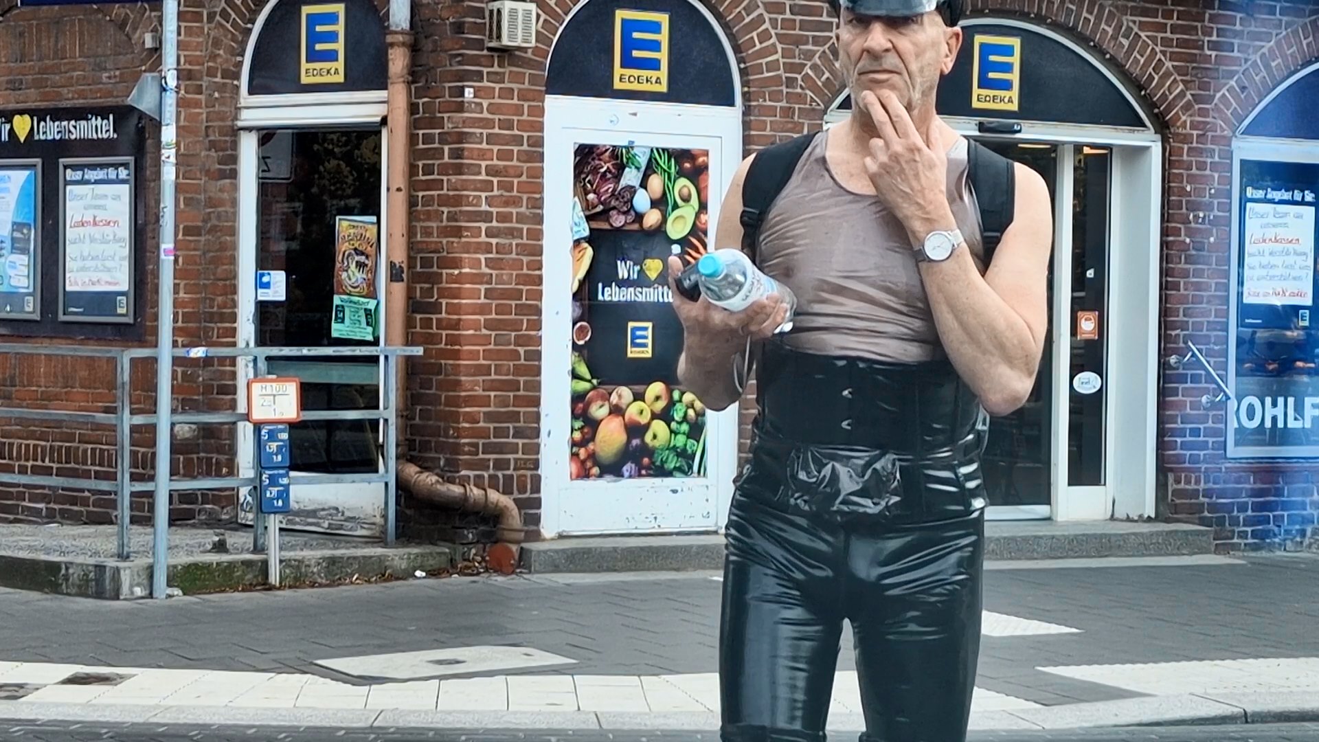 Plastikschlampe Volker G.: SÜCHTIG, öffentlich in Lack und Plastik herum zu laufen