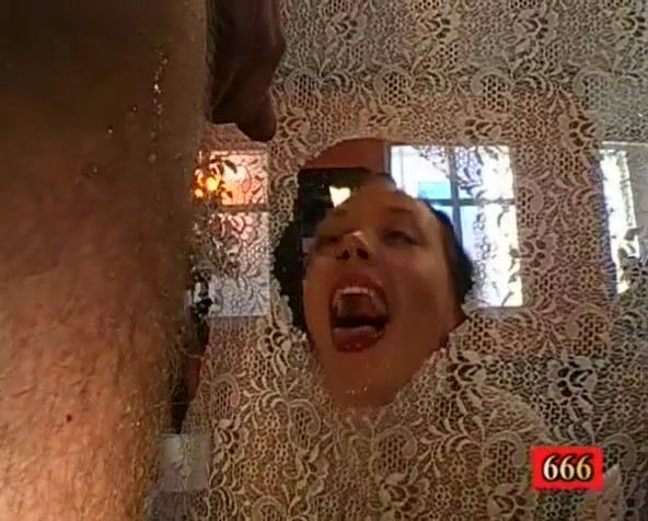 Piss and cum bukkake for Annette Schwartz and her girlfriend.